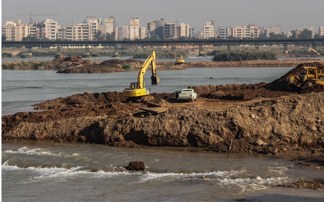 گزارشهای میدانی رسانههای خوزستان همچون: روزنامه وحدت، روزنامه کارون، روزنامه نسیم خوزستان، روزنامه صبح کارون، روزنامه اروند و روزنامه سرآغاز و همچنین گزارشهای منتشر شده در برنامه پایش در تاریخ یکشنبه 13 دی ماه 94 از رسانه ملی، به وضوح نشان میدهند که خاکریزی در پرآبترین رودخانه ایران به طور بیوقفه و شبانهروزی با سکوت دستگاههای دولتی در حال انجام است. هماینک خاکریزیهای استانداری خوزستان در ساحل غربی کارون تا هلال آخر پل سفید اهواز رسیده و عرض رودخانه در زیر این پل را به 50 تا 60 متر کاهش داده است و به همین سادگی زیرمجموعههای استانداری خوزستان به جای لایروبی اصولی و مهندسی رودخانه کارون، به طور شبانهروزی در حال خاکریزی و ریختن نخاله ساختمانی در این رود هستند تا با ساختمان سازی عرض کارون را کاهش دهند! پدیده کارون خواری متاسفانه فقط محدود به اهواز نمی شود و در شهرستان گتوند نیز به حریم قانونی رودکارون تجاوز شده است و حتی دستگاههای دولتی علاوه بر کارون در حال تعرض به رودخانه بهمنشیر به بهانه احداث جزیره شادمانی و خاکریزی علنی در رودخانه بهمنشیر هستند.